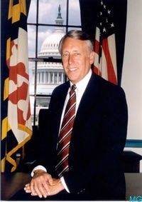 Steny Hoyer (born June 14, 1939) is a Democratic member of the United States House of Representatives, representing the 5th district of the State of Maryland (map) since 1981, and is the current House Minority Whip. Hoyer was born in New York City but grew up in Mitchellville, Maryland. He graduated from Suitland High School in Suitland, Maryland and went on to attend the University of Maryland, College Park, earning a B.S. degree in 1963. He earned his law degree from Georgetown University in Washington, D.C. in 1966. He and his deceased wife, Judy Pickett Hoyer, have three daughters: Susan, Stefany, and Anne.